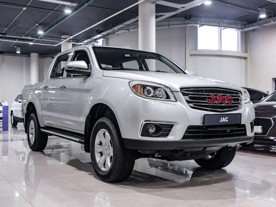 Внешность китайского пикапа JAC T6 в действительности внушительна. Автомобиль выглядит мощно и немного грозно. Все из-за размеров пикапа. Достаточно только взглянуть на 17-дюймовые диски и высокий клиренс. По мощному внешнему виду сразу становится понятно, что автомобиль проедет не только по городским дорогам, но и в труднопроходимых местах.
